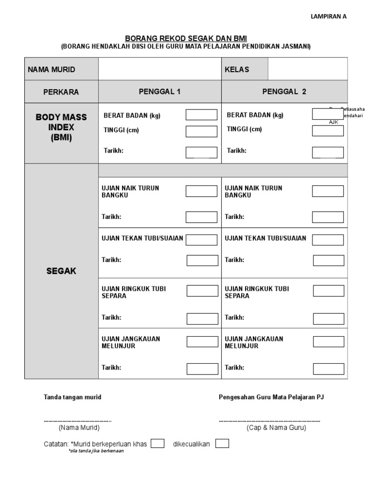 Langkah-langkah Pelaksanaan Ujian SEGAK 1. X TINGGIM UJIAN Ulangan Markah UJIAN Ulangan Markah NAIK TURUN BANGKU RINGKUK TUBI SEPARA TEKAN TUBI JANGKAUAN MEUNJUR PENDIDIKAN JASMANI DAN PENDIDIKAN KESIHATAN. Borang Ujian Segak - 18 images - borang ujian segak sekolah rendah dapat youtube titian ilmu ujian standard kecergasan fizikal kebangsaan segak pendidikan jasmani ujian tekan tubi ubah suai.